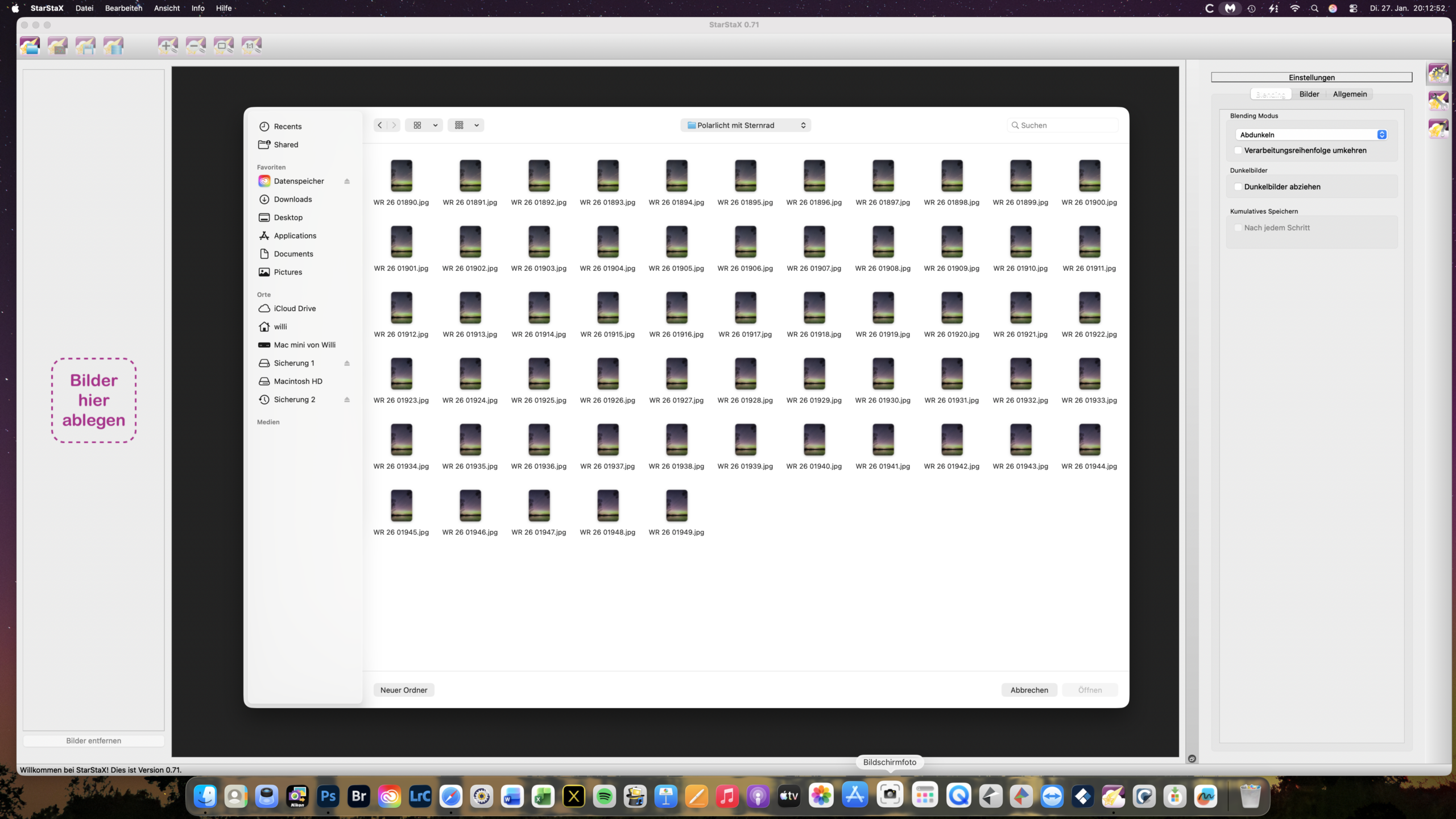 Das Programm StarStax erlaubt eine schnell und umkomplizierte Verrechnung der Bilder. Dazu wird zunächst eine bestimmte Anzahl Bilder zur Verarbeitung ausgewählt.